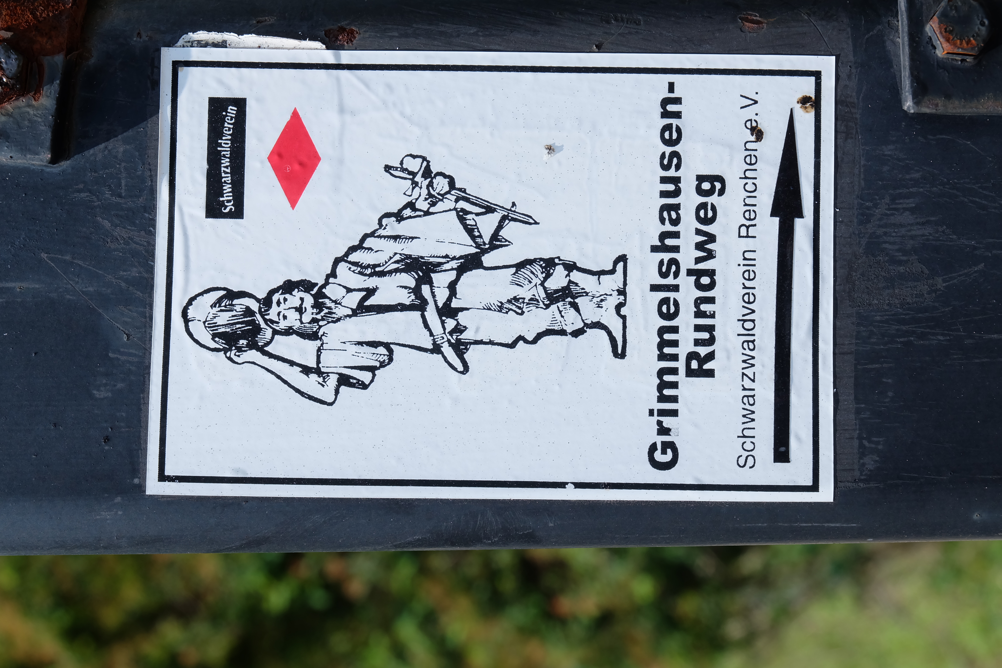 Le logo du Circuit de Grimmelshausen ; photo : Ville de RenchenLa commune était déjà connue à l'époque de la guerre de Trente Ans par son maire Hans Jakob Christoffel von Grimmelshausen. Il était moins célèbre par son activité officielle. Au contraire, il fut connu comme écrivain et entreprit des excursions dans les environs qui alimentèrent son ouvrage principal, « Le Simplicissime aventureux de Teutsch », paru en 1668/69.