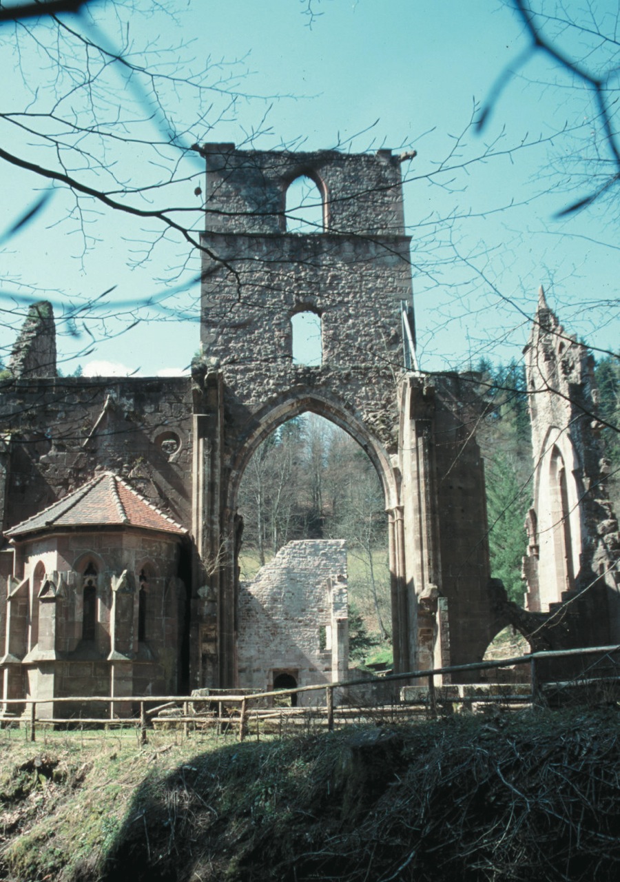 Couvent en ruines d'Allerheiligen. Photo : Touristinformation OppenauLe tour de 10 km commence à la gare d'Oppenau. A partir de l'église catholique nous prenons un court raidillon vers le nord, puis notre itineraire est presque plat, soit sur sentier, soit sur des chemins forestiers.