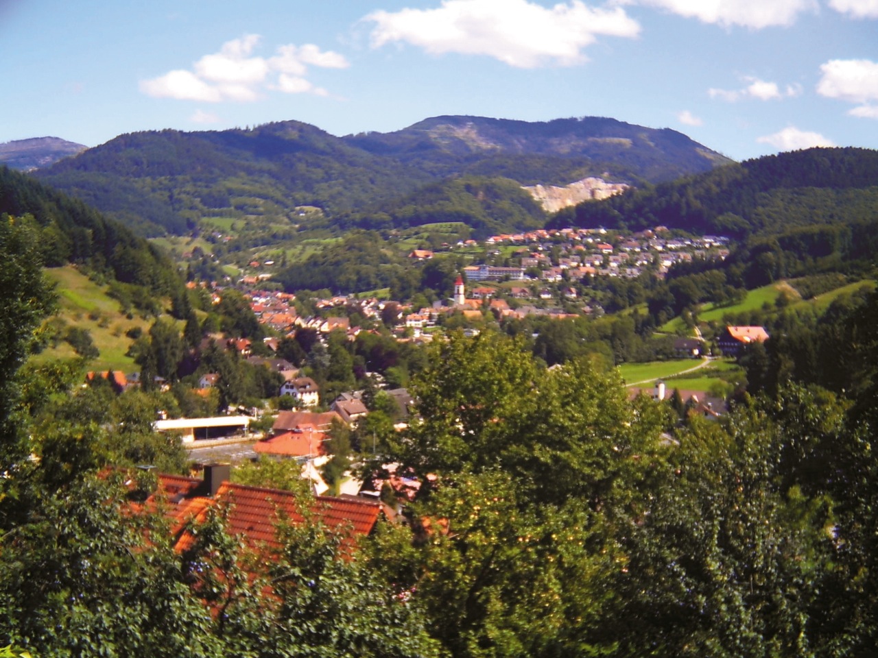 - Ou prende le sentier « Achertäler Heimatpfad » (lonsange bleue) par « Knappeneck » à l'hameau de Sohlberg et descendre par « Satteleiche » et « Steighütte » à la gare de Lautenbach (9 km).