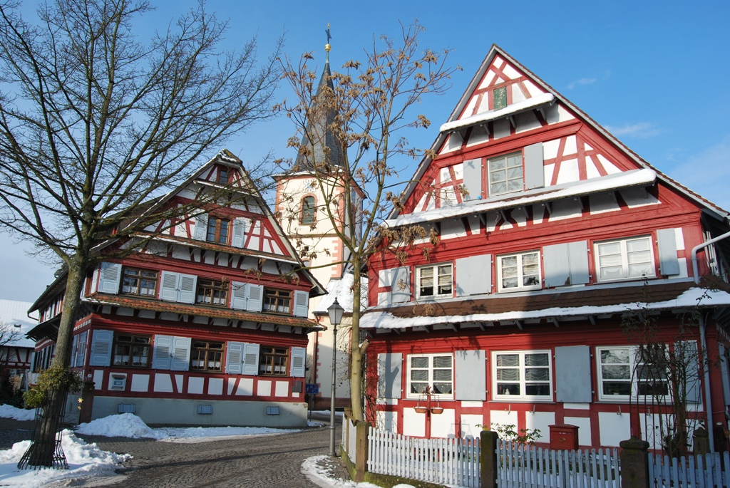 Puis on continue par Sand jusqu’à Appenweier, où la direction du circuit tourne vers le nord. En passant à travers des champs et des forêts, parallèlement au canal de décharge des crues de la Rench, on arrive au bout de 30 km à Rheinbischofsheim, le point le plus au nord de la randonnée. Ce village de la commune de Rheinau, recèle aussi de nombreux beaux bâtiments à colombages et une église protestante en briques avec un clocher impressionnant. On peut faire une pause sur la place du village ou à l’hôtel Napoléon avant de poursuivre la route vers Diersheim. Là, on peut profiter d’une nouvelle pause reposante au bord de l’étang du village magnifiquement situé (38 km).