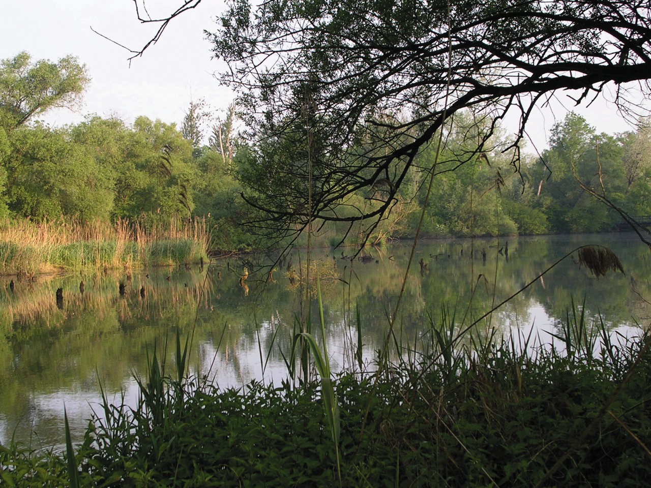 Une forêt primaire avec de nombreux bras morts caractérisait ces paysages avant la rectification du cours du Rhin au 19ème siècle. Celle-ci s'étend à l'ouest de la digue des hautes eaux. A l'est de cette digue nous trouverons des prairies et des haies irriguées par les bras morts.